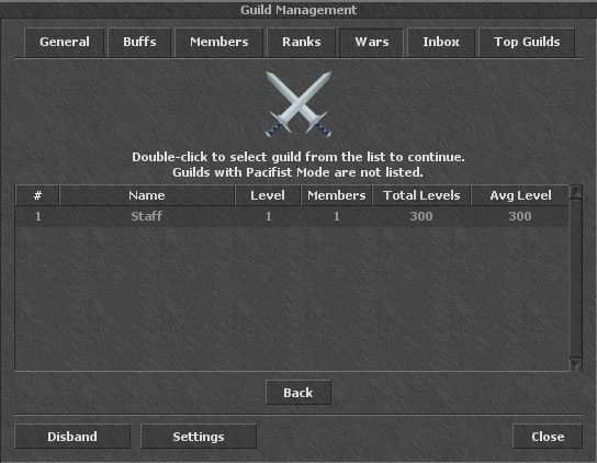 Declare War system dentro do jogo mesmo na aba do Guild Management veja frags da war entre outras funcionabilidades novas, agora você pode criar guild pelo jogo, invitar player no game sem precisar deslogar, SYSTEMA de buffs para toda guild conforme sobe o nível da guild vai liberando novos buffs entre outras funcionabilidades e benefícios do guild management.